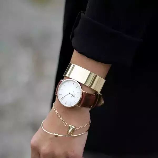 金色是最常见最百搭的配饰了,而且有提升气质的作用。