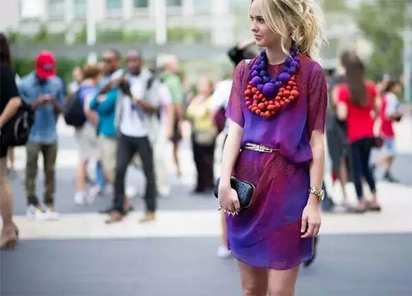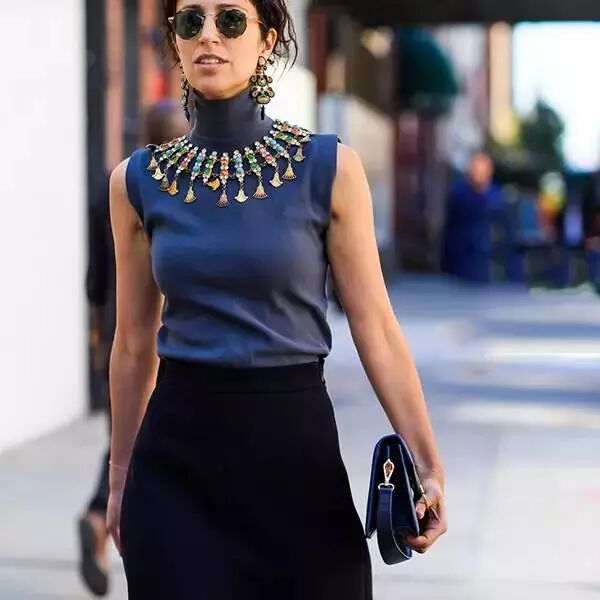 即使是在正式场合中,简约款 夸张配饰的搭配