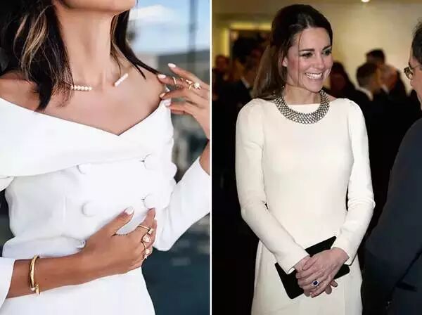 比如下面凯特王妃的这一身白裙 大项链的搭配,