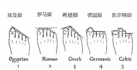 在中国最常见的是埃及脚、罗马脚和希腊脚。