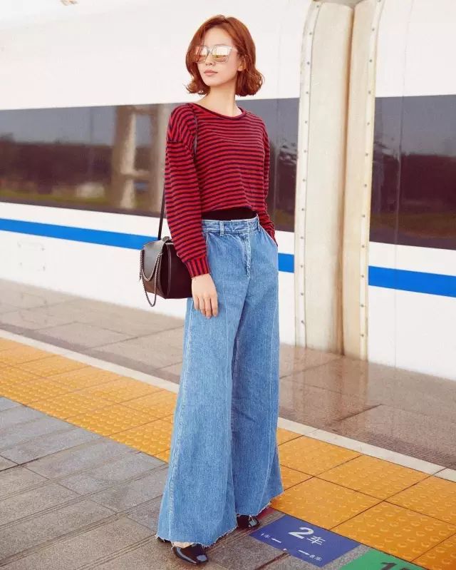 宽松的阔腿裤绝对不会暴露身材的缺点。