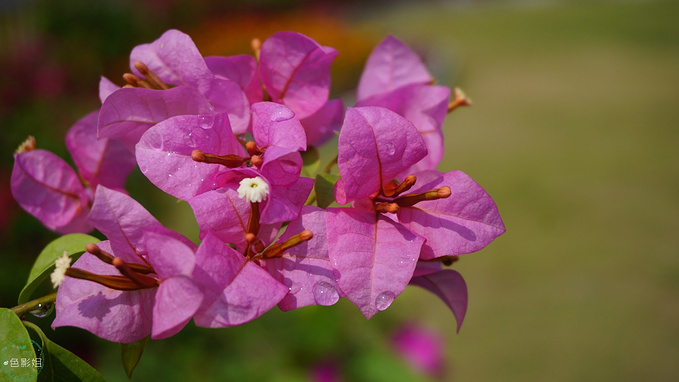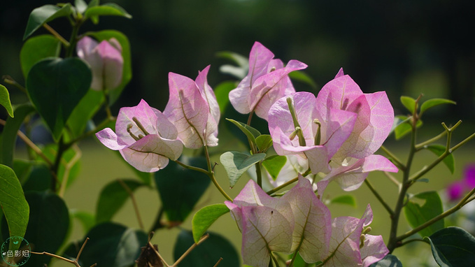 绿叶樱花三角梅,花瓣的尖尖是粉红色,下部分是白色太可爱,这个渐变色太诱人了。