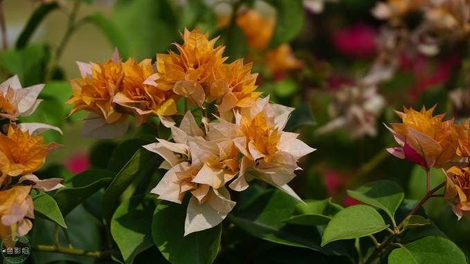 绿叶柠檬黄三角梅,这个色,还真有点像秋天的树叶噢。