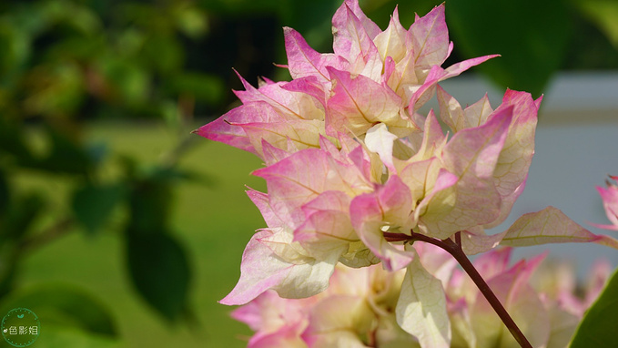 口红三角梅,奇怪了,白色的花怎么叫口红,原来这种花,花尖是粉红的,像抹了淡淡的彩虹,但有的时候全开白色。