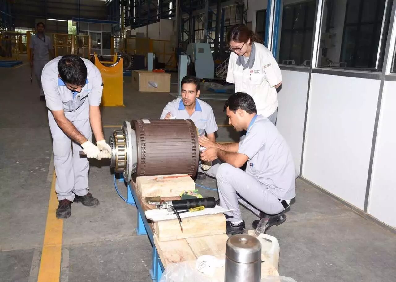 目前,中车先锋(印度)电气有限公司已经招聘了17名印度当地员工。这些员工于今年6、7月间赴中车永济电机公司接受专业技术培训,初步具备了现场操作资质。近日,在中车永济电机公司技术支持人员的指导下,中车先锋(印度)电气有限公司中印员工一起,已经成功组装完成了第一台电机,标志着这一“中印混血”的合资公司具备了铁路牵引电机及发电机整机的批量总装试验能力。随着“中国先进技术”传授给越来越多的印度员工,中车先锋(印度)电气有限公司的业务范围也将迅速从新造拓展至检修、技术支持等;从轨道交通产品拓展至为石油钻井、风力发电、矿山装备等领域提供电传动系统。