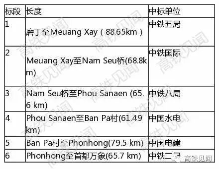 中老铁路6个标段的具体中标单位详情见下表: