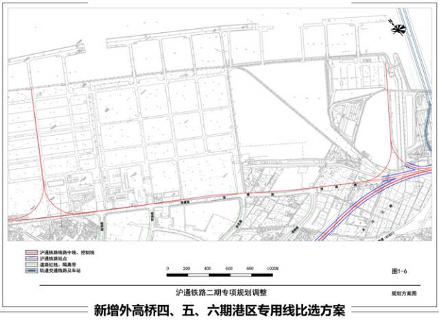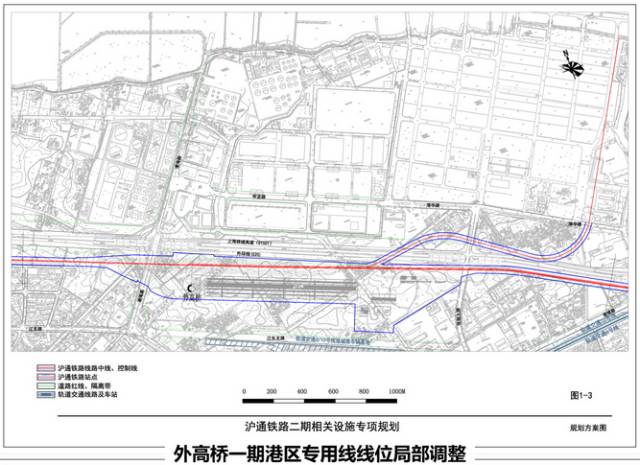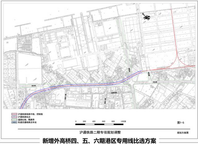 ④外高桥四、五、六期港区专用线局部调整,新增外高桥站出线方案;同时保留原规划控制曹路站出线的专用线方案。