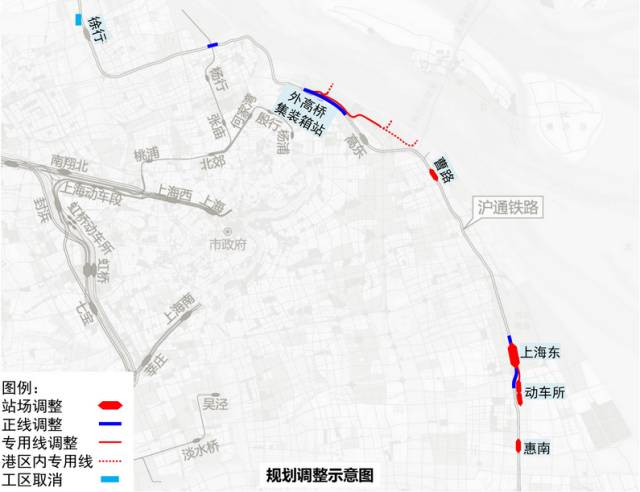 ③沪通铁路二期(外高桥站至华申路段)铁路正线向南局部调整,调整段长度约5千米。