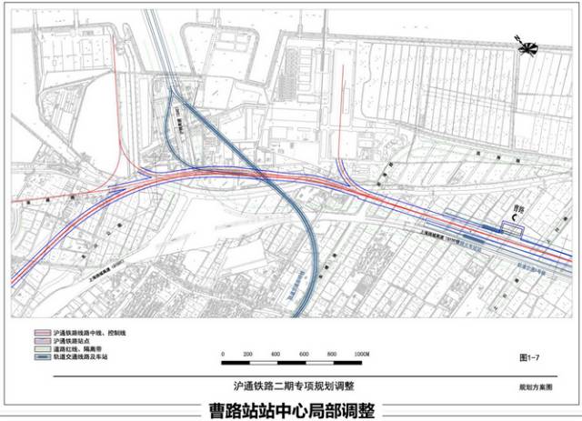 ②曹路站预留货运功能和专用线出线条件,站中心向南局部调整约150米。