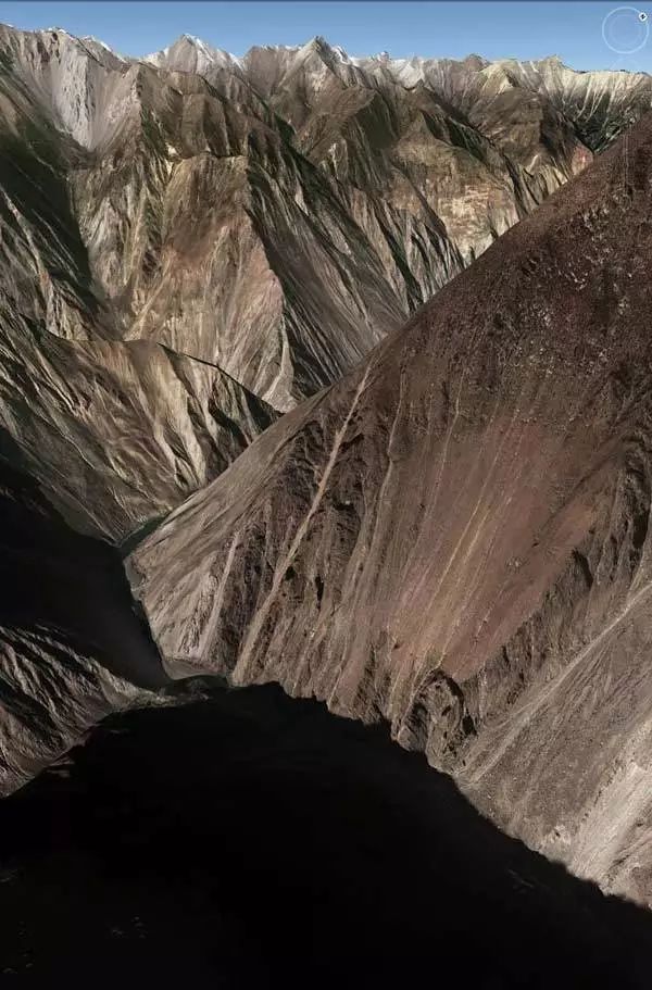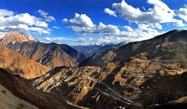 由于线路北移,沿川藏北线的G317,避免了下游的深切河谷,河谷与高山之间的高程差有所降低,但工程依然是非常艰巨的。