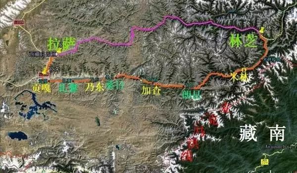 值得一提的是,从林芝到拉萨,铁路没有走G318国道尼洋河谷、拉萨河谷的平坦北线,而是走S306省道的崎岖南线,更靠近藏南的中印边境争议地带,用意不言而喻。