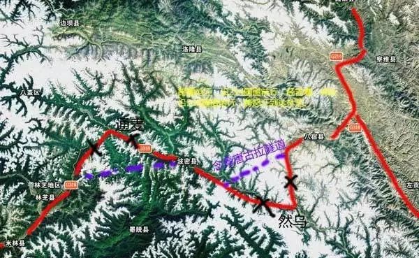 从八宿到波密,从波密到林芝,这一段线路需要以长隧道打穿念青唐古拉山,绕开然乌湖、通麦天险,同时还能使线路裁弯取直。