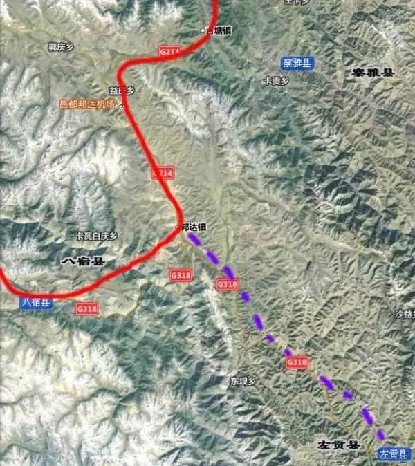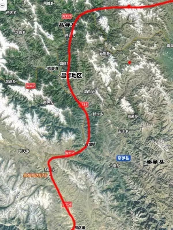 因此,合理的方案只能是向北绕行,放弃芒康、左贡,绕过了澜沧江下游的深切河谷,转向北边的川藏北线(G317)。
