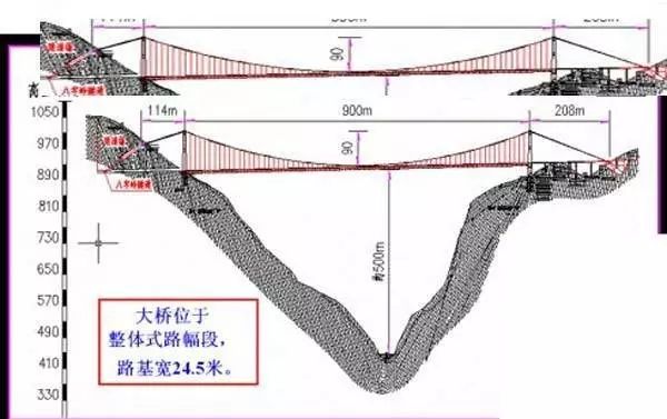 而且,四渡河公路大桥的主跨长度是900米,未来的怒江特大桥主跨将长达1064米,是最长的铁路悬索桥之一。