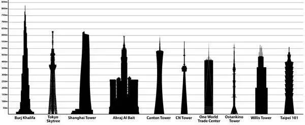 视觉上更鹤立鸡群的广州塔天线尖顶600米,结构主体高454米,主要观光层430米。