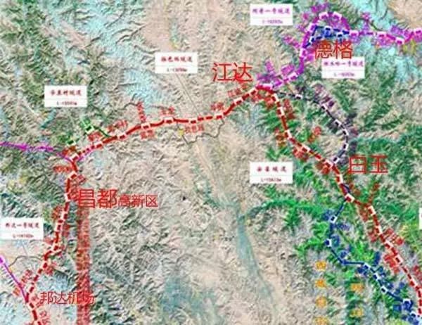 从江达青泥洞乡一带的海拔4000米的高原牧场,穿越一系列长隧道下到海拔3200米的澜沧江河谷,昌都镇南边30公里的昌都开发区。