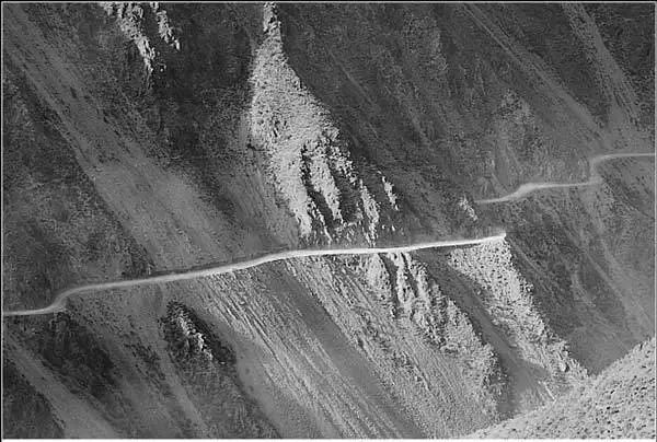 再下降到2950米,进入怒江峡谷,沿峡谷东岸逆流而上约10公里,并继续降高,抵达全线的咽喉要道:怒江桥。
