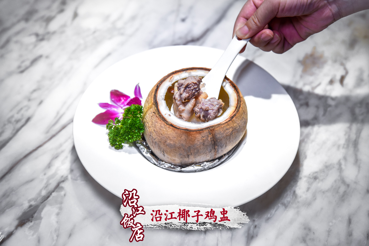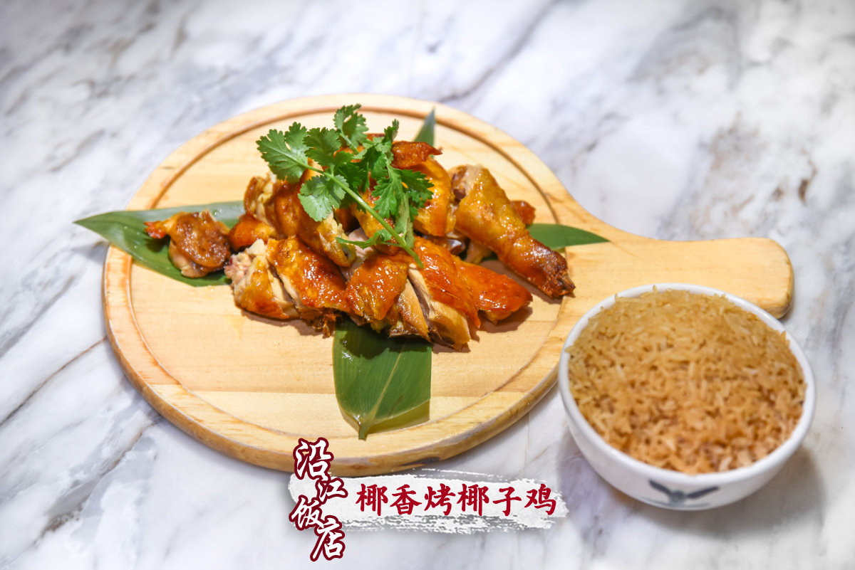 椰香烤椰子鸡--色泽诱人、外焦里嫩、咸淡适中、肉质酥嫩、椰香扑鼻,老少皆宜;沿江椰子鸡盅--汤品醇厚、椰香回味、口味清甜、肉质细腻,极具仪式感; 配上饭粒饱满、油而不腻的海南鸡饭--回味无穷。一鸡三吃,满足众口难调的味蕾需求。