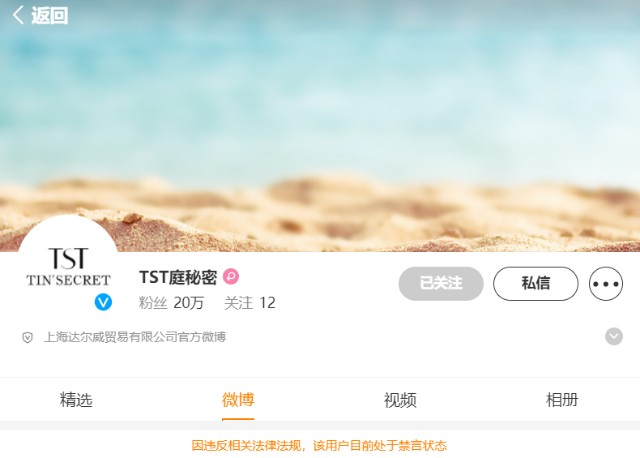 值得回味的是,2021年12月28日,林瑞阳张庭夫妇旗下达尔威公司因涉嫌传销被石家庄市裕华区市场监督管理局立案调查,冻结资金6亿。次日凌晨“TST庭秘密”还通过官方微博回应称,公司是一家合法经营的公司,一切正常,但之后林瑞阳张庭夫妇及“TST庭秘密”的微博账号都被禁言。