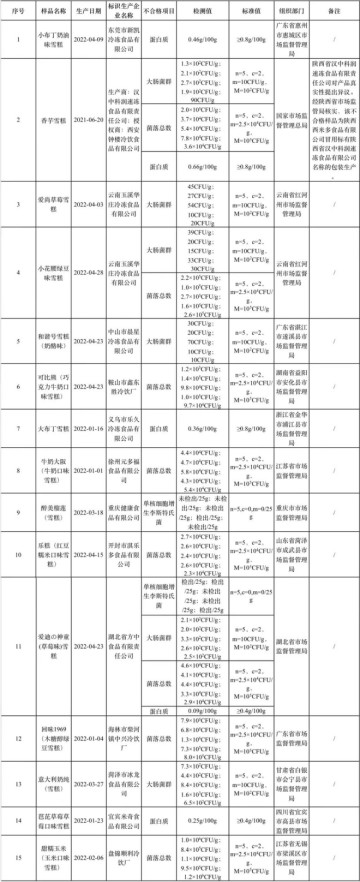 据初步统计,2022年上半年,各级市场监管部门共组织监督抽检3137批次雪糕产品,检验项目包括蛋白质、甜蜜素、糖精钠、阿斯巴甜、菌落总数、大肠菌群、沙门氏菌、单增李斯特菌等。