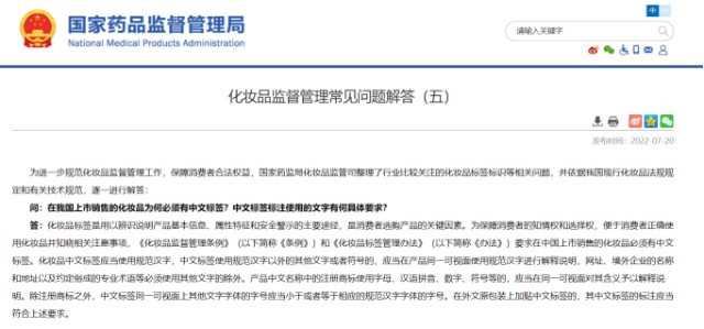 权威发布!国家药监局最新解答关于化妆品标签标识等问题