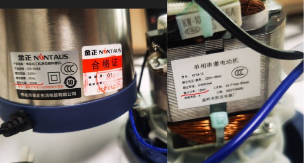 《声明》附带的《检测报告》恰好证明其以次充好?附表证实:破壁机进行3C认证不测整机功率,而是测量部件的输入功率偏差,被测量部件的额定功率明明白白标着额定功率300W、800W,也就是测量额定功率为300W的电机的输入功率偏差。可卖给消费者的产品装配的可是额定功率105W的电机。