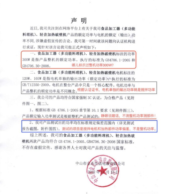 随后,涉事厂商金正生活电器发文称:产品符合国家强制3C认证,为合格产品。不存在虚假宣传。