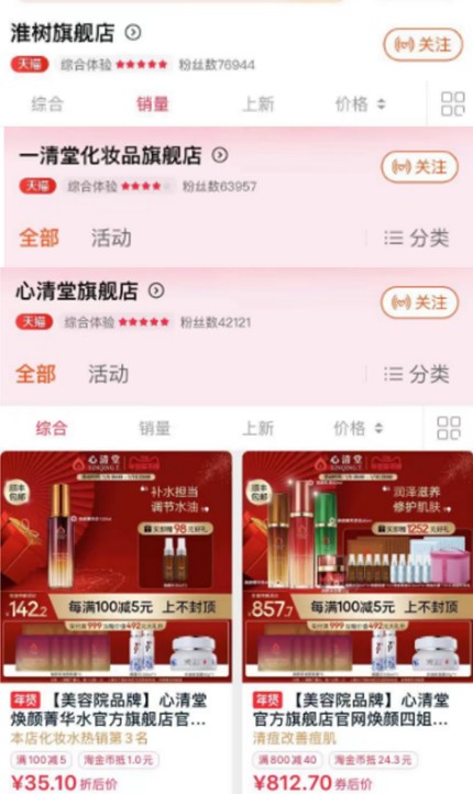 目前,各大销售平台中,天猫还算是化妆品公认销售较好的平台,但兰树股份的槐树品牌只有不足7.7万粉丝,一清堂品牌不足6.4万粉丝,心清堂品牌只有4.2万粉丝。