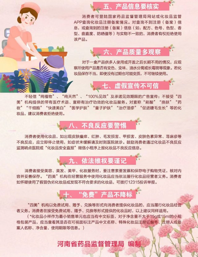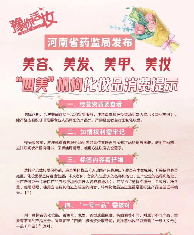 “三八”国际妇女节和3.15消费者权益日,河南省药监局、西安市市场监管局相继发布“美容、美发、美甲、化妆品”(以下简称“四美”)机构化妆品消费提示。
