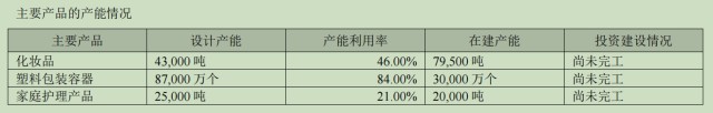 家庭护理产品设计产能2.5万吨,产能利用率为21%,在建产能2万吨。