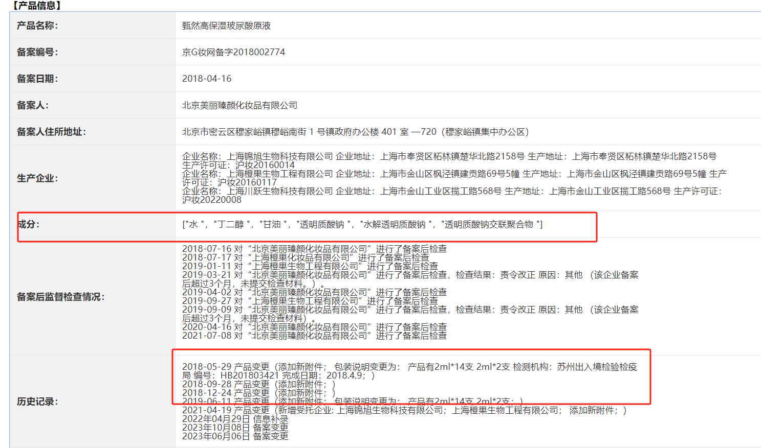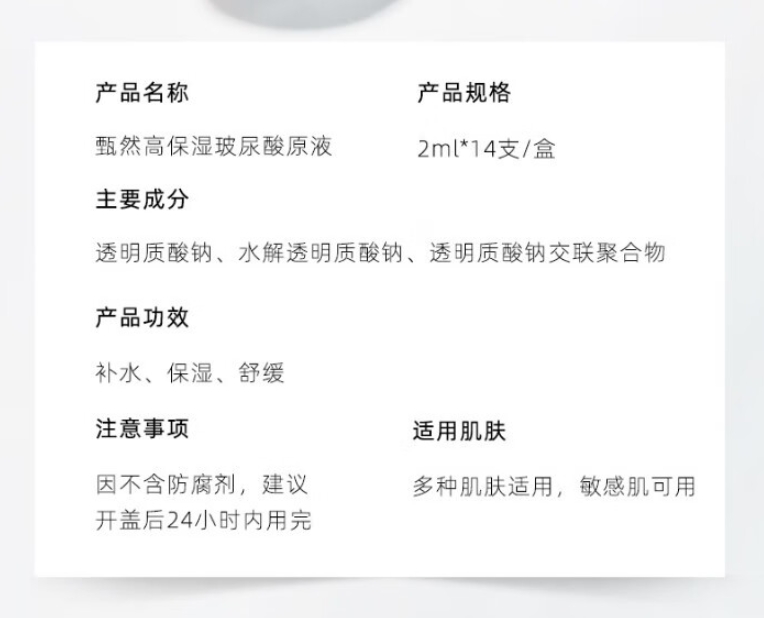 需要说明的是,“高保湿玻尿酸原液”备案的产品有“产品有2ml*14支