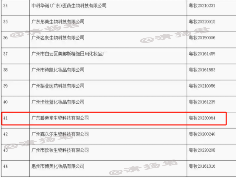 2024年10月17日,广东省药品监督管理局对存在严重生产质量管理体系缺陷的45家化妆品企业下达了停产令,其中就有广东碧素堂生物科技有限公司。