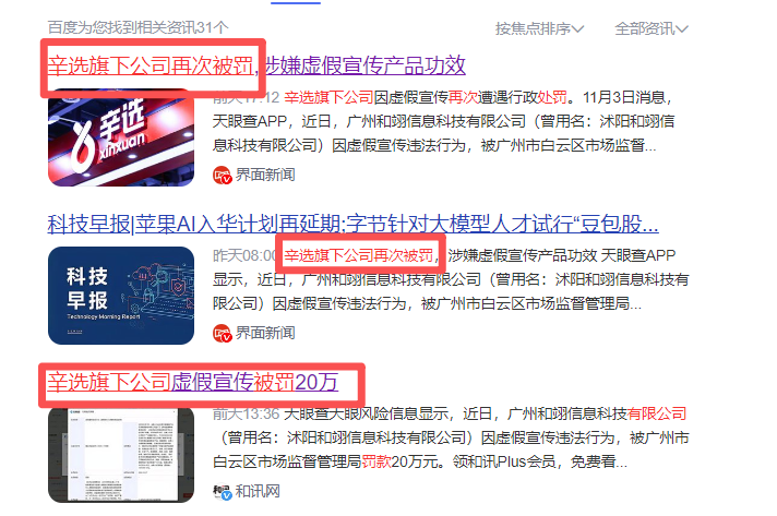 10月27日,企查查APP显示,广州和翊信息科技有限公司(以下简称“和翊公司”)因虚假宣传被广州市白云区市场监督管理局罚款20万元。这家公司背后若隐若现的,正是辛选体系。