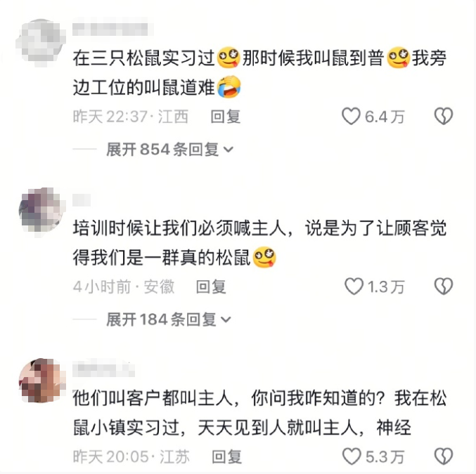 曾在松鼠小镇实习的网友现身说法:“他们叫客户都叫主人,天天见到人就叫主人,简直神经。”这番吐槽道出了多少员工的无奈与尴尬。