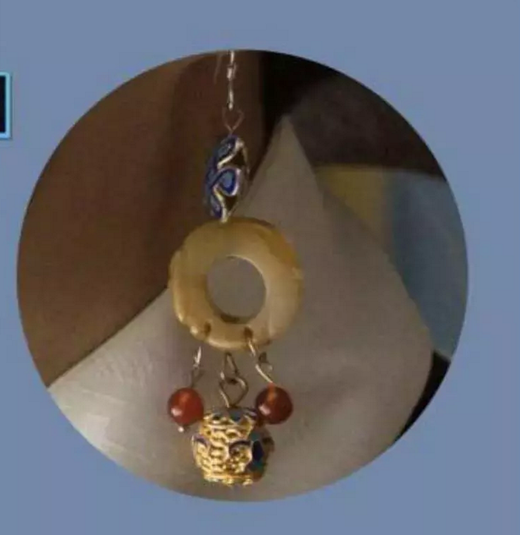 近看就知道,旁边两颗小珠子是上面垂坠下来的。