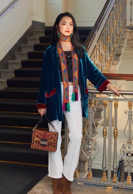 标志性的佩斯利花纹连衣裙,搭配堆堆靴,手拎民族风手袋,尽显浪漫的波西米亚风情,这一身,首选自然型人。