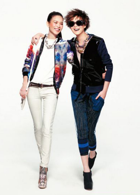 星云印花大热一直持续到早春,就连夹克外套都与时俱进地走起了时髦路线。花色的星云图案搭配通身的白色,纯棉与牛仔的白色自然呈现层次感。选择一双夸张的钉珠短靴来呼应高调的上装,华丽不羁才是时尚王道。