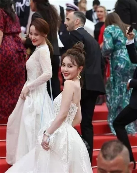 景甜这一身,远看挺美,近看小细节让人有联想。有少女风格的她,这条裙子也没毛病但是看不出特别高级的感觉,尤其是那一圈圈明线的白纱褶皱。