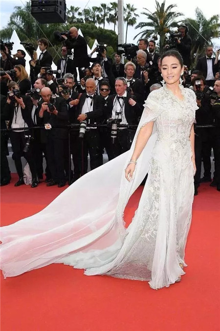 作为戛纳常客的巩俐,身着白色战袍,气场十足,出场时官方的直播也是给足了长达两分钟的镜头,见证了她在戛纳电影节的地位。这一身对于53岁的巩俐来说整体状态也不错。
