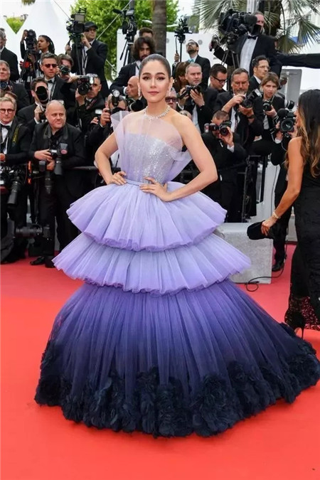 有着“泰国范冰冰”之称的女演员阿拉亚·爱尔柏塔·亥盖特亮相红毯,一身紫色蛋糕裙尽管吸人眼球,但没啥特色,这种款的已经在红毯上出现过很多次了。