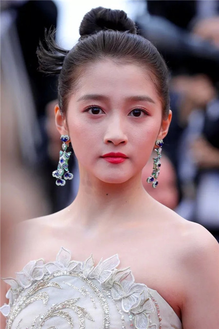 紫蓝色耳环与衣服上的刺绣色彩呼应很妙,但就具体人来说,晓彤是古典偏优雅型人,耳环显得有点夸张了。
