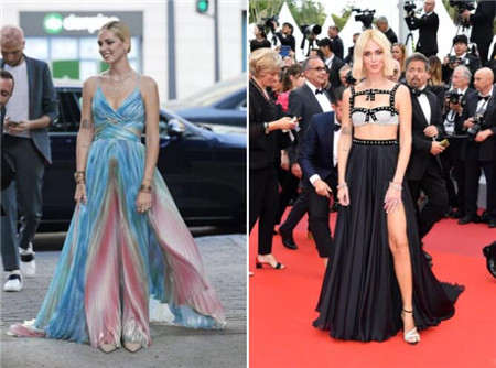 比起渐变色长裙的飘逸洒脱落落大方(左),今年戛纳红毯上的Chiara