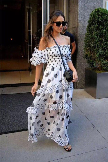 波点儿越大,衣服的风格越大?裙边越宽大,衣服的风格也越大?通常是这样的。不过不要走入一个误区就是以圆点大小来定乾坤。圆点儿的大小还是要建立在衣服的廓形、直曲、长短之上的。左边适合少女,右边适合浪漫、自然、时尚、戏剧。