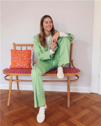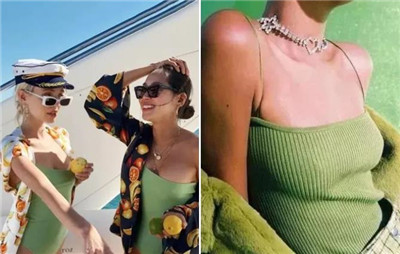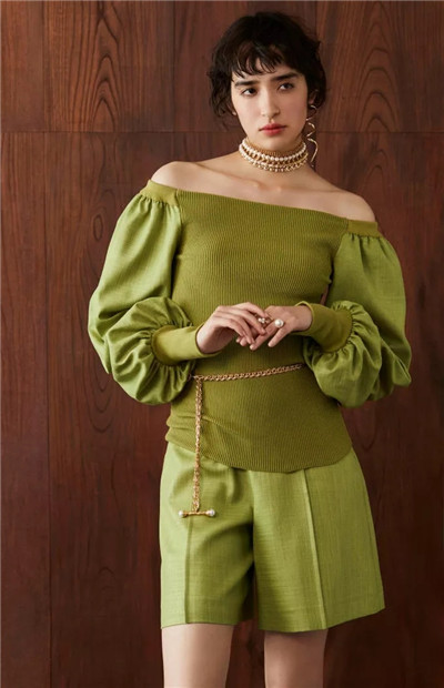 它很接近今夏流行的“牛油果绿色系”中的一种,显得雅致、清新、柔和。