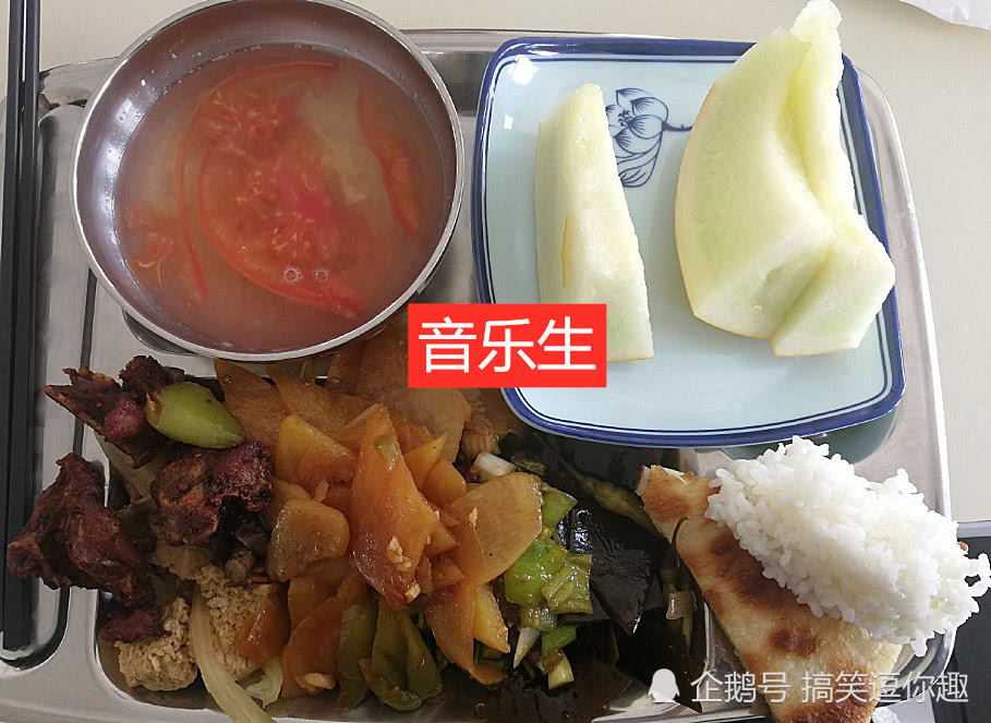接下来再来看一下音乐生的午餐,音乐生是靠自己的嗓子练习的所以他们在吃所有东西的时候都一定要保持味道淡,不会伤到自己的嗓子,看他们的午餐也是非常简单的没有什么特别油腻的东西,看出来他们对自己要求也是比较高的。