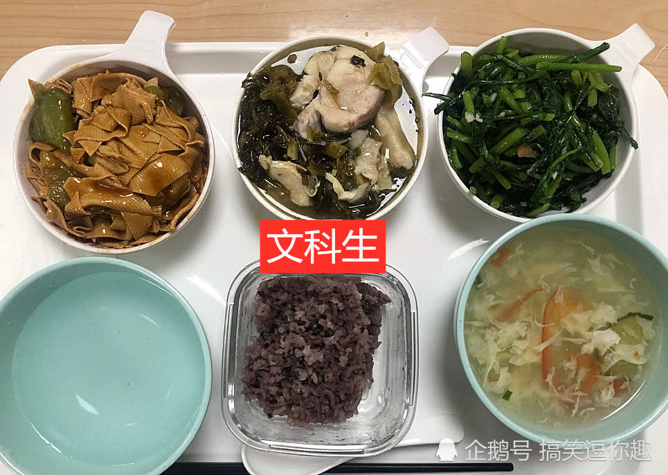 首先看一下文科生的午餐,文科生平常就是学习也没有什么特别的活动他们的午餐自然是比较平常正常的午餐,看他们的午餐里都是一些营养的东西,并且这么看的话主食也不是特别多但是非常的营养均衡,能看出来他们非常注重自己的生活质量,他们这样的午餐你是不是也想吃了呢?