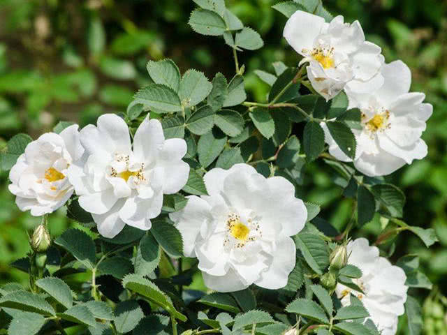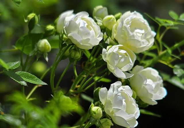 白蔷薇芳香浓郁,花朵有着妖媚的红色和苍凉的白色,枝上有刺,秋果红艳。白蔷薇象征着幸福、纯洁、真诚,被喜爱花卉的罗马尼亚人所钟情。