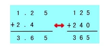 第三类:把1.25 和2.4 先看成整数125 和240来计算,然后把整数变成小数。