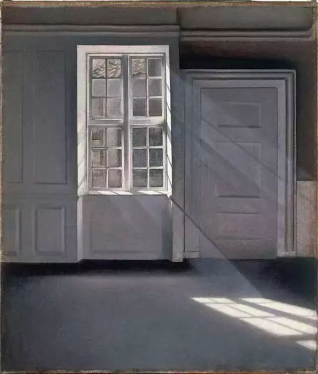 画中的主题多半是艺术家在哥本哈根家中的一个角落以及艺术家妻子的背景,一切仿佛在空气中凝结为静物的户外的风景或建筑。