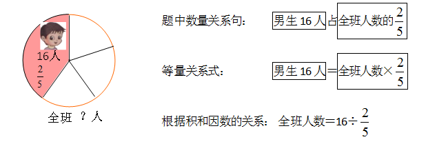 2个分数单位是16人,求全班5个分数单位的人数:=16÷2×5